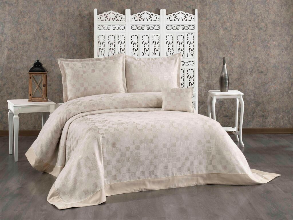 Çeyizlerin en zarif ve kullanışlı parçalarından biri olan Viorra Collection Jakarlı Pike Takımı, yatak odanızın dekorasyonuna asil bir dokunuş katmak için tasarlandı. Jakar dokuma tekniği ile kumaşa işlenen kendinden desenli motifler, yatak odanıza derinlik ve zengin bir görünüm kazandırır.