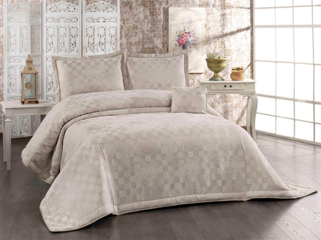 Viorra Collection Ella Yatak Örtüsü  Takımı Vizon ile Yatak Odasında Şıklık
