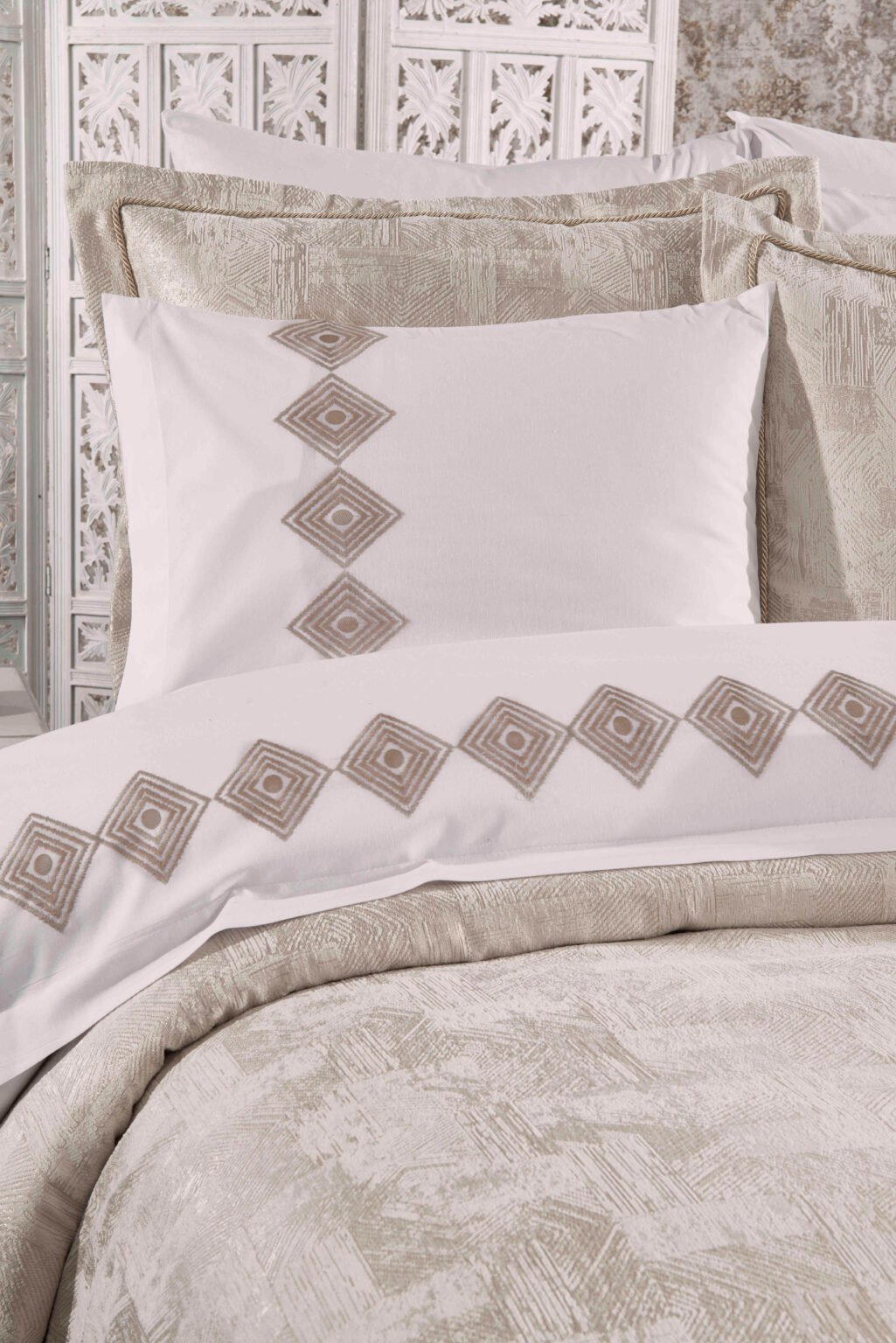 • Öne Çıkan: Dantelli detaylar ve pano yastık tasarımları.
