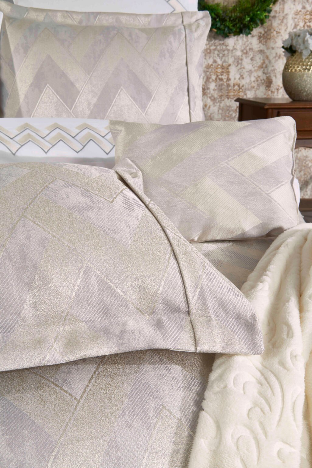 Set içerisinde yer alan yatak örtüsü, nevresim takımı ve yumuşacık battaniye, birbirleriyle tam uyumlu renk ve desenlerden oluşur. 6 adet yastık kılıfı (dantelli, desenli ve pano) ile yatağınızda katmanlı ve lüks bir otel konforu oluşturabilirsiniz.