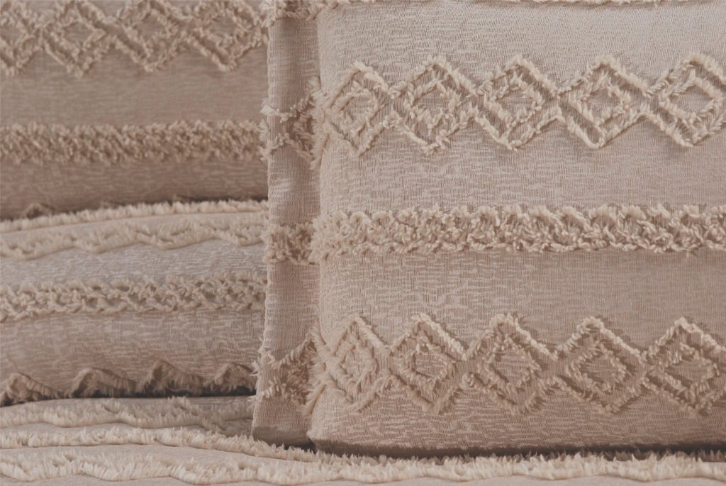 Çeyizlerin en zarif ve kullanışlı parçalarından biri olan Viorra Collection Jakarlı Pike Takımı, yatak odanızın dekorasyonuna asil bir dokunuş katmak için tasarlandı. Jakar dokuma tekniği ile kumaşa işlenen kendinden desenli motifler, yatak odanıza derinlik ve zengin bir görünüm kazandırır.